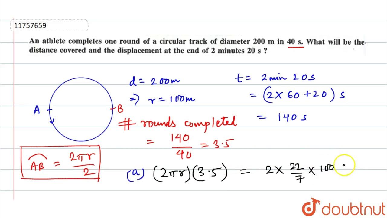 An Athlete Complete One Round Of A Circular Track Of Diameter 200 M In 40 S What Will Be Th Youtube